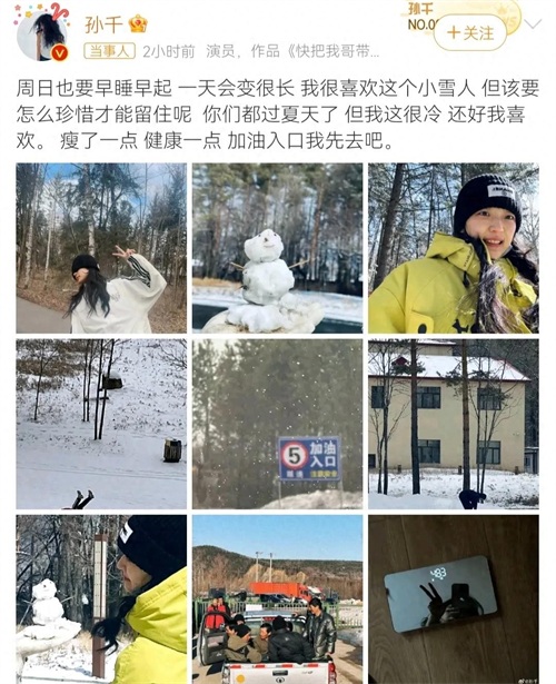 3月31日早上,女星孙千在个人社交软件上更新了动态,并配文“瘦了一点,健康一点”。在各地草长莺飞的三月末,她在那边堆起来了雪人,看的出来十分开心。