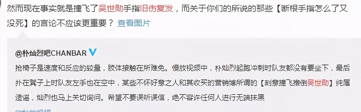 朴灿烈粉丝团与吴世勋粉丝团闹掰的根源之一就是朴灿烈玩游戏不知轻重,从高空扑向凳子的时候直接把吴世勋撞飞,导致吴世勋小拇指旧伤复发。