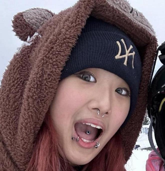 不光是在嘴唇还有鼻子上打洞做时尚鼻环耳环等,她还在脸上秀大片的纹身。随着梧桐妹的照片放出来,大家留言:该不会是真的纹上的刺青吧,那就太大胆了。