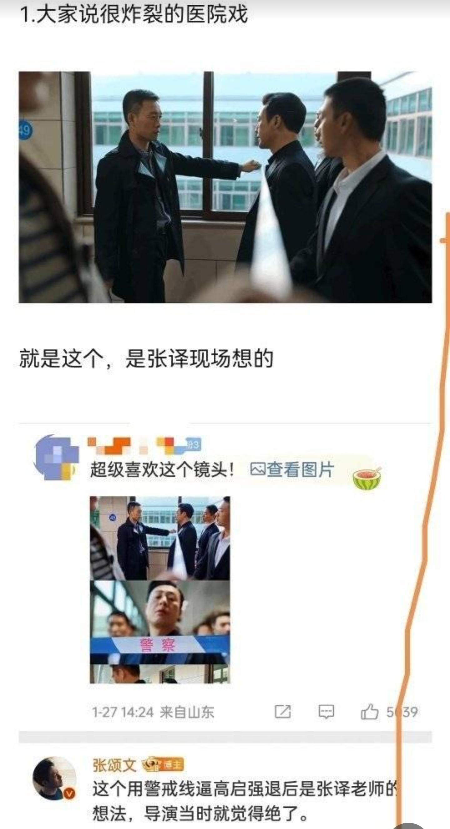 网友吐槽张译乱改剧本,但我目前看到的情况,是演员们都对张译修改剧本和台词这事情很赞赏,张颂文公开发文说张译改警戒线的想法很棒,导演都夸赞说“绝了”。