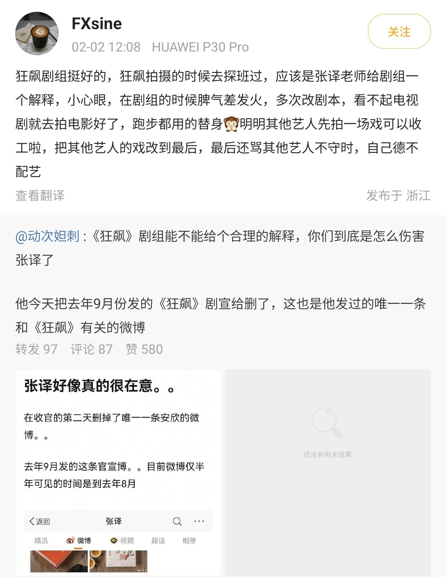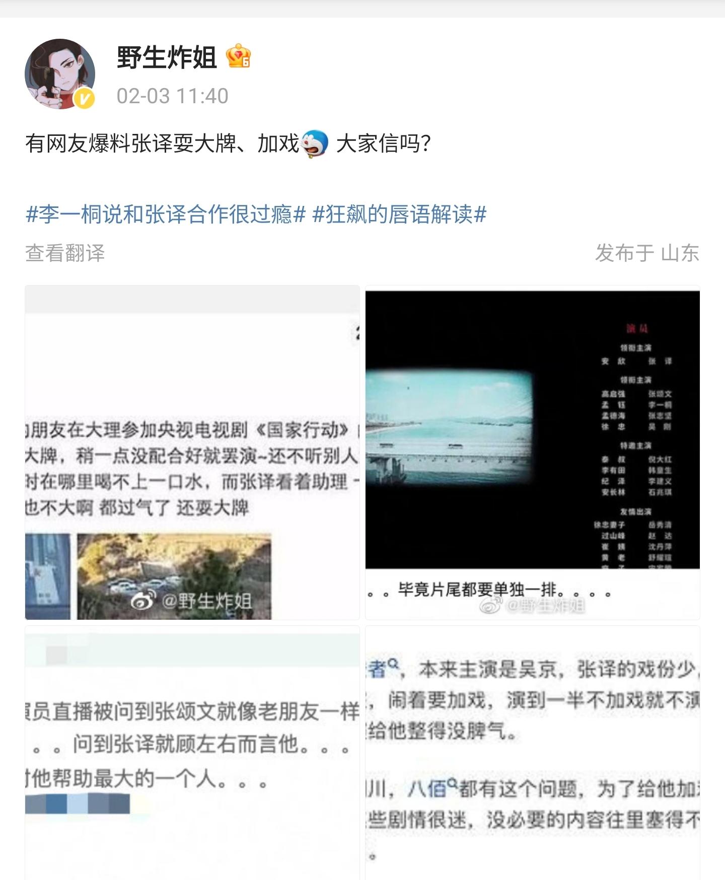 该网友转发了那个为张译“打抱不平”的文案,解释说《狂飙》剧组挺好的,自己在拍摄的时候就去探班过,剧组不应该给张译老师一个解释,反而是张译老师应该给《狂飙》剧组一个解释。