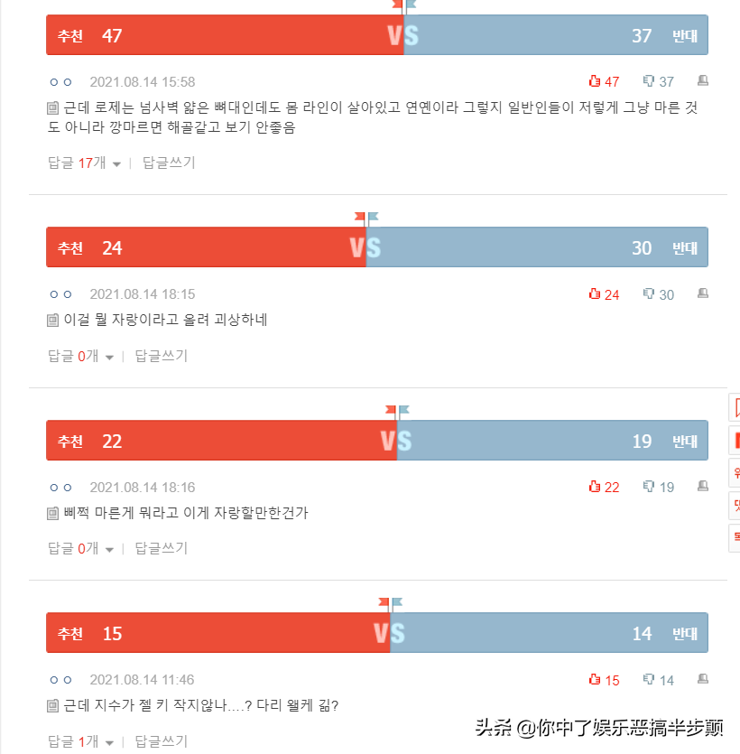 当然除了赞美之外,还有许多网友对这种追求以瘦为美的趋势感到非常失望,一点都不健康,认为这不是什么骄傲的事情,不应该鼓励这么做。对此,正反双方还进行了一番探讨,也是各种思想输出,彼此僵持不下。