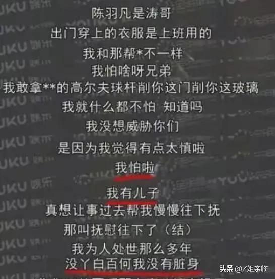 陈羽凡给出的言论,没有任何一张照片可以佐证。很明显,陈羽凡在撒谎。看得出,他是在被迫说这些话的,他在舍车保帅。