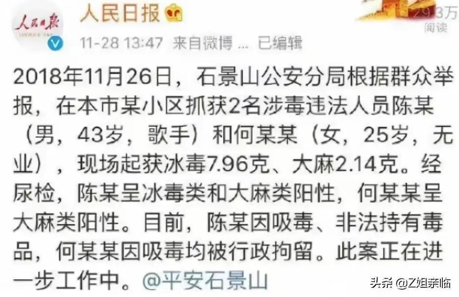 2018年,陈羽凡因涉毒被关押,名声尽毁(下图)