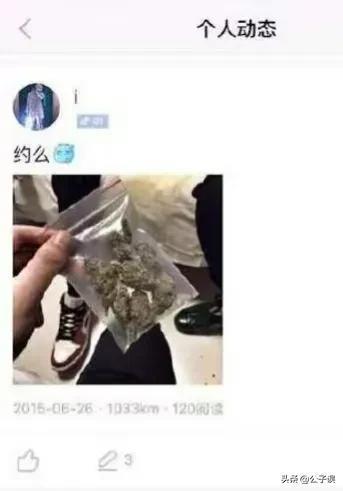 其中有一张照片,疑似王昊手持一袋大麻,文案是: