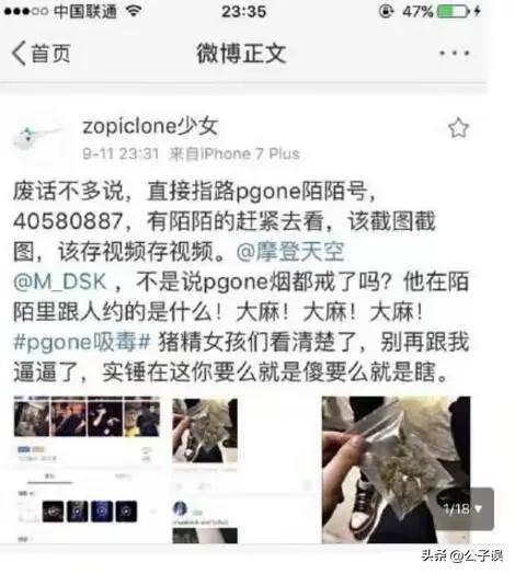 有一个人,自称是PG One的粉丝,用私信功能骂警察,称吸毒不该管。