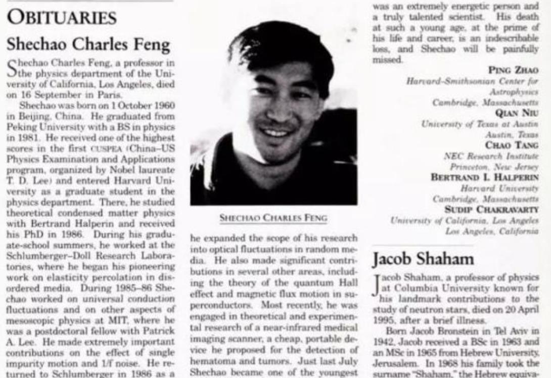美国最具权威的《今日物理》通常只会刊发有关物理学的相关知识,而冯奚乔的去世,却让这样的杂志上刊登了讣告。