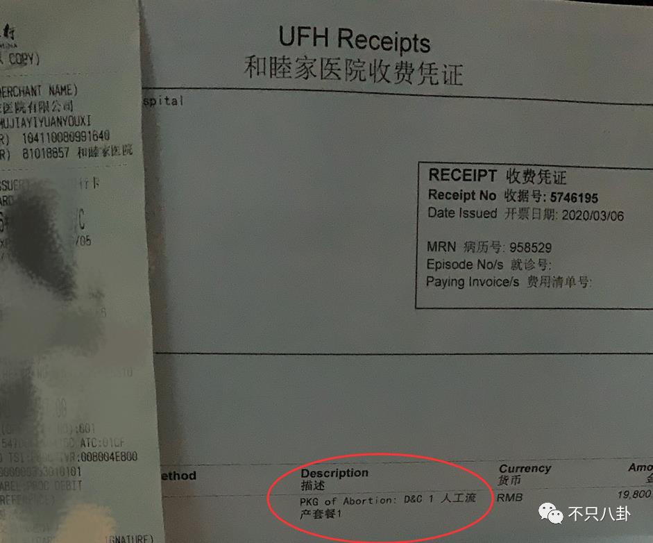女生为了锤张超一边说想她,一边陪别的女生打胎这件事,甚至还晒出了北京和睦家医院的收费凭证。