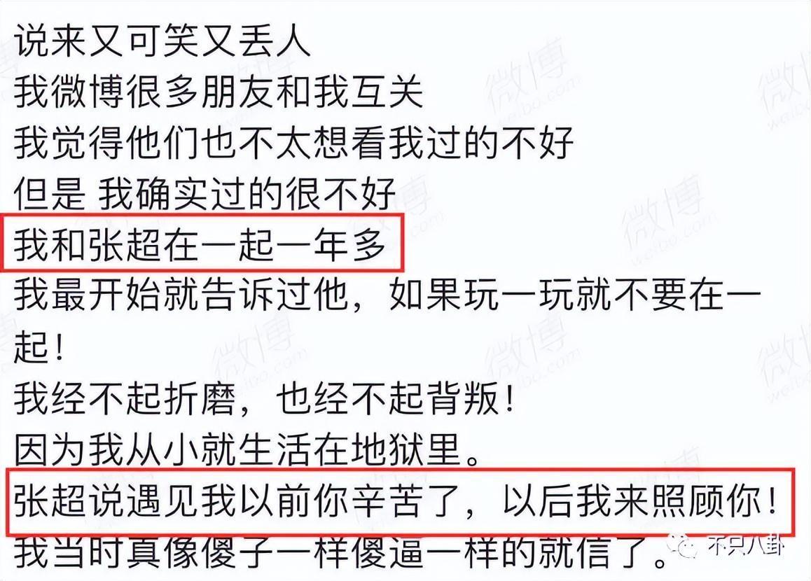 据爆料女生说,她和张超在一起一年多,张超曾经和她说过“以后我来照顾你”之类的甜言蜜语。