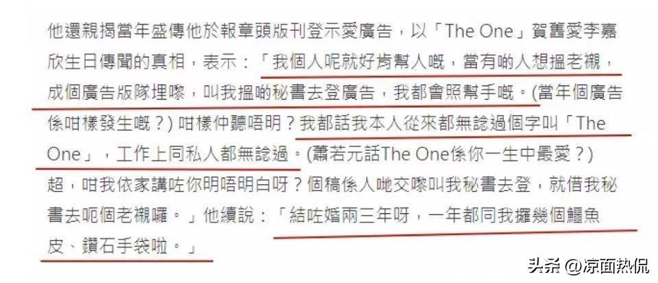 第二,当年那个登报庆生吧,只是受人之托,暗指李嘉欣想借他的名头在豪门虚张声势,他念及旧情与人方便,就默许了对方借势。