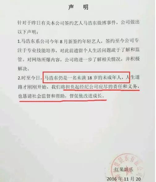 虽然他渣到爆,但是作为他经纪公司还是不会放弃颜值超高的小嫩肉的,经纪公司的意思估计是:他还未满18岁,浪子回头金不换!