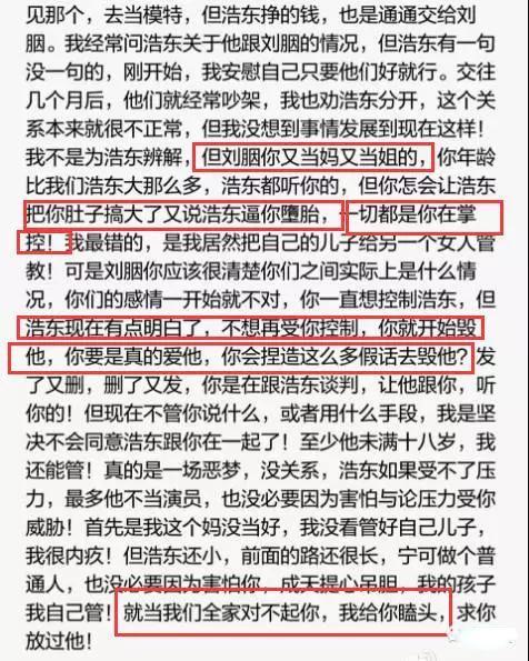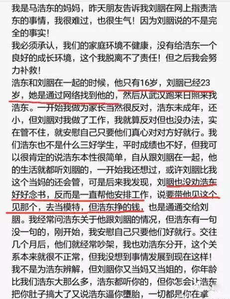 然而这一切还没有结束,马浩东没有发声,她的妈妈却发微博驳斥刘胭,说:自己儿子未成年,刘胭企图精神控制马浩东!