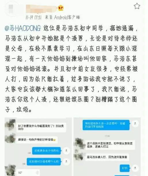 也有网友爆料说,马浩东不是渣~~是真的很渣很渣!上学的时候就不是什么好鸟