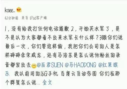 然而马浩东妈妈炮轰以后,马浩东的经纪人也出来发声,指责刘胭是心机女!