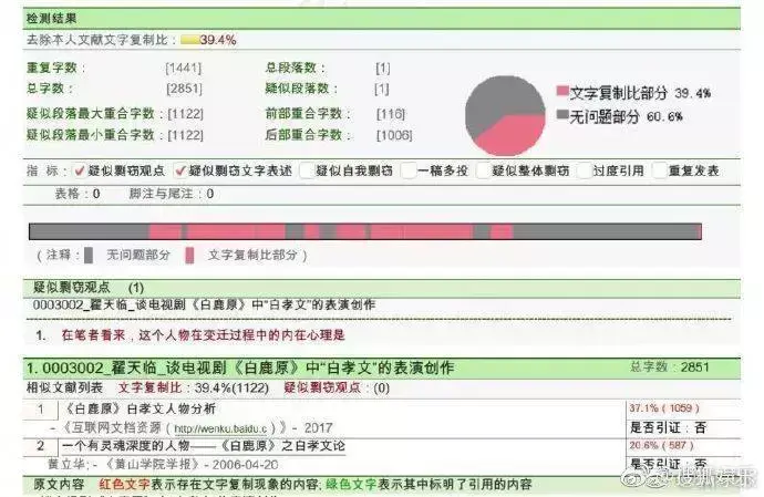 网友不买账,粉丝战斗力也很强,各种求锤得锤,惹急微博大V 扒出他没有一篇发布在核心期刊上的论文,根本不符合博士录取要求。仅有的一两篇3000字不到的小论文,文字复制比高达39.4%,被原作者站出来直指他抄袭。