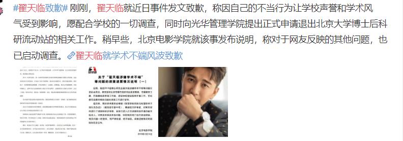 而且翟天临也公开道歉了!!