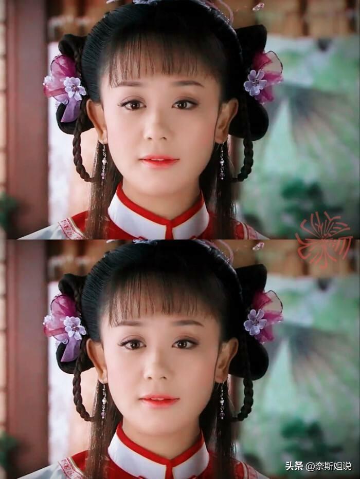 看过新还珠格格的都知道那时候的海陆脸还是圆圆的,大眼睛,双眼皮明显,小嘴巴薄嘴唇,鼻子也还不错,笑起来小虎牙甜甜的,那时候的她虽然不是很出众的长相,但也算是个小美女。