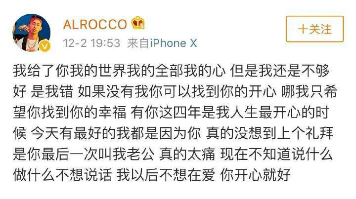 其实从12月2日康雅馨在社交平台发布消息确认与Al Rocco分手,那个时候康雅馨就明确表明“怕舆论胆子小”,很明显有向网友示弱的态度。康雅馨自己也说了与Al Rocco分手的原因不重要了,感情没有对错。然后Al Rocco也发微博做了声明,其言语中包涵着太多不舍,频频示爱明显是还放不下康雅馨的意思。再说Al Rocco和康雅馨应该属于和平分手,两人都没有破口大骂,一个淡定放下另一个祝对方以后幸福。以Al Rocco与康雅馨的感情基础看,说不定两人还有复合的可能性。