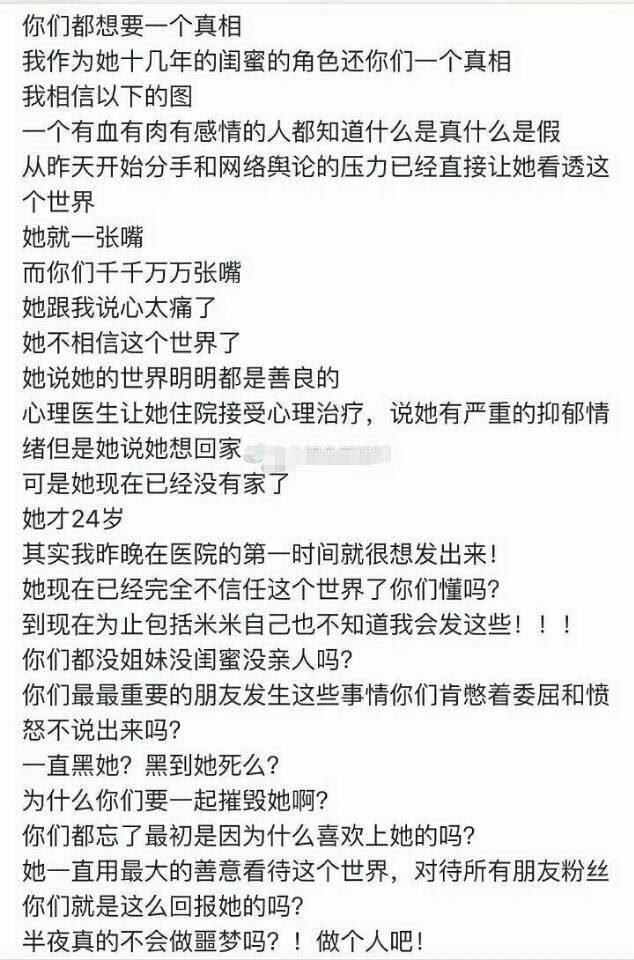 可惜在这个不需要负责任用语言就可以杀人的网络时代,没人在乎真相是什么,网友的恶语相向,造成了现在的悲剧。