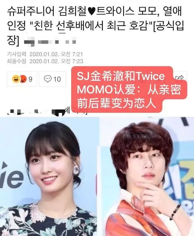 而让万年单身的金希澈终于承认恋情的,就是之前就被传出两人在一起的韩国组合女团TWICE成员MOMO(平井桃),昨天,韩国的网络媒体Market News发布两人恋爱的报道后,今天早上,双方通过经纪公司正式官宣,而这个消息不仅震动了韩国娱乐圈,也迅速的抢占了热搜!