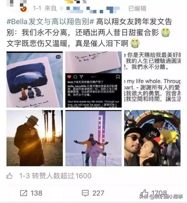 并且在高以翔去世之后,知情人才从其高以翔好友蒋珅玮口中得知,高以翔有一个相恋6年并将即将求婚的女友,于是高以翔女友Bella的这种恋情被扒了出来。