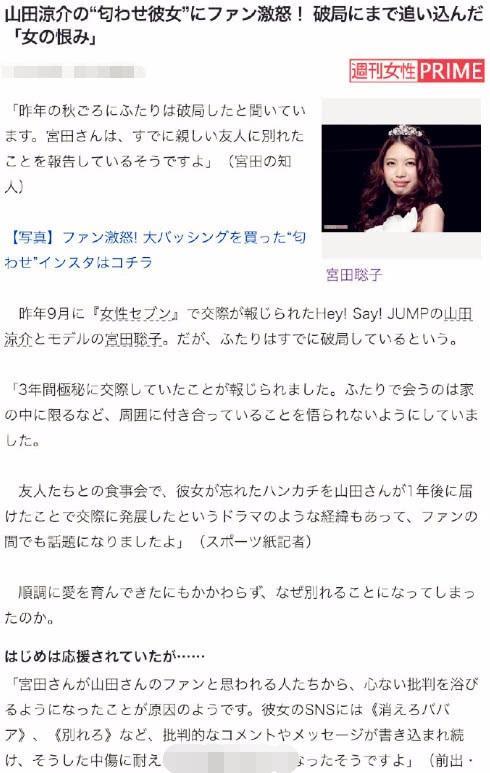 听起来像是言情小说一样的情节,但如果被大众看到肯定会说2人十分不相配吧。于是2人秘密交往3年,很少有人知道他们的恋情。直到刚刚日媒曝出,山田凉介和宫田聪子已经分手。而且是在去年公布恋情之后不久,就已经分手了,只是现在才刚刚公布消息而已。