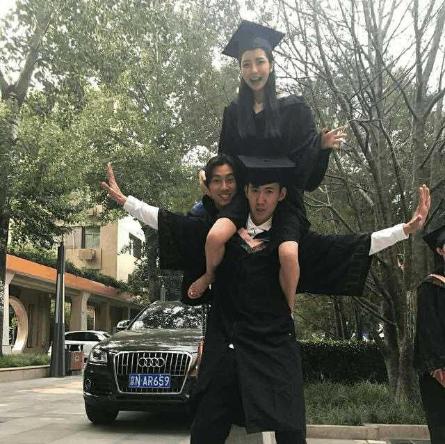 王思聪女友豆得儿大学毕业照曝光,骑男同学肩上异性缘超好,与军训时判若两人