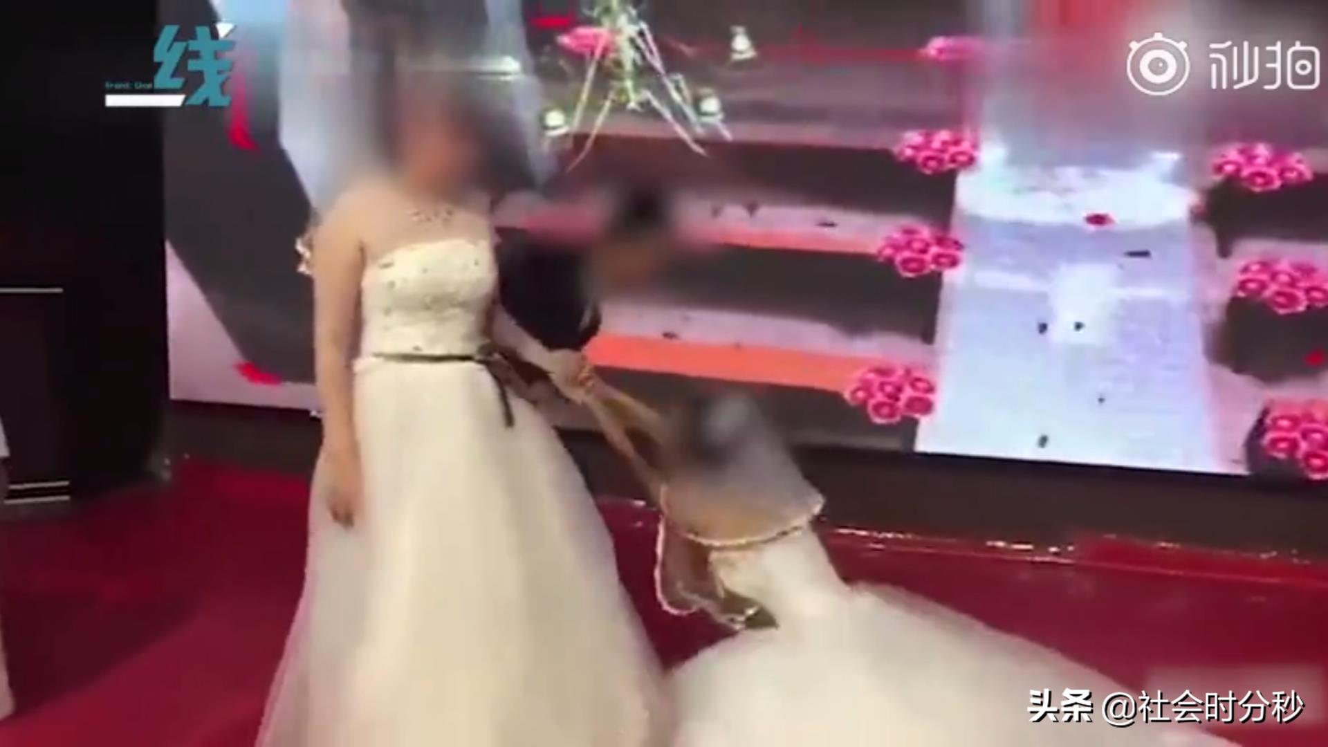 太狗血!新郎即将亲吻新娘 前女友穿着婚纱冲上台“抢婚”轰动全场