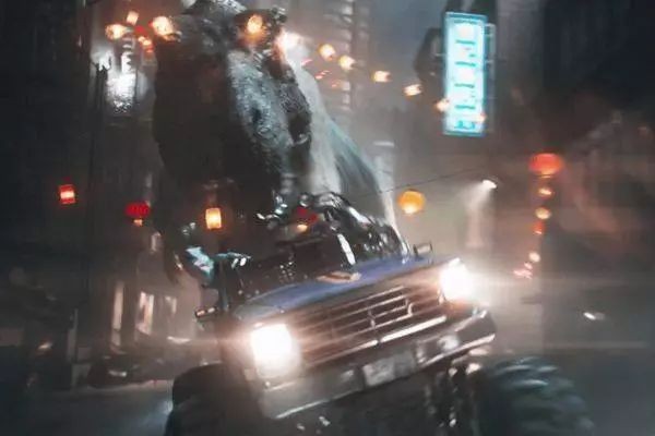 75.在片头的赛车片段,里面出现了《侏罗纪公园》里面的霸王龙T-Rex,它追着艾齐的越野车的场景在《侏罗纪公园》里面也有类似的画面。