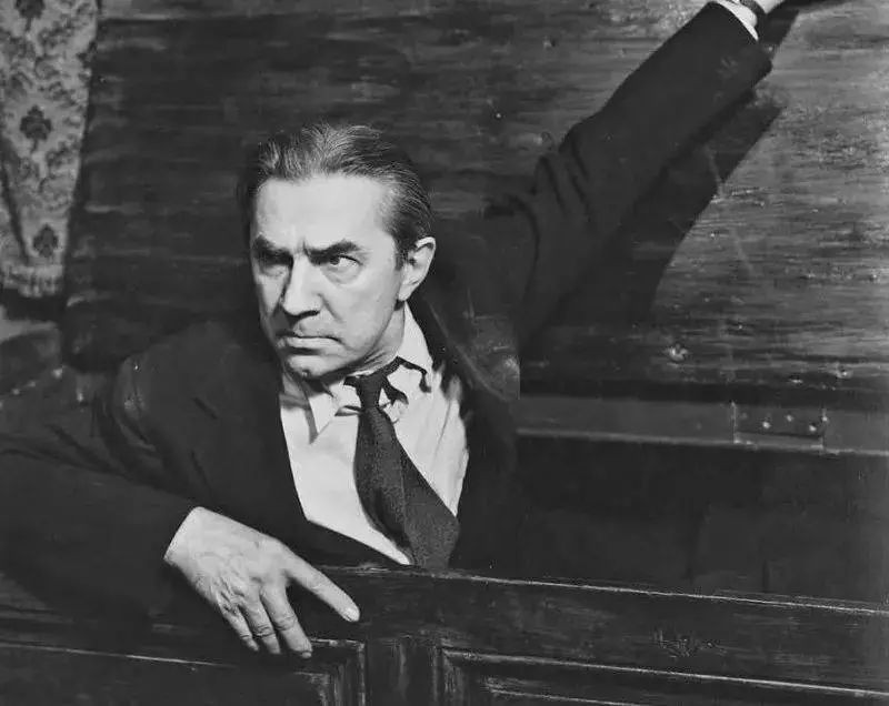 65.哈利迪在棺材中突然坐起来的镜头,来自贝拉·卢戈西版的德古拉,《吸血鬼》。