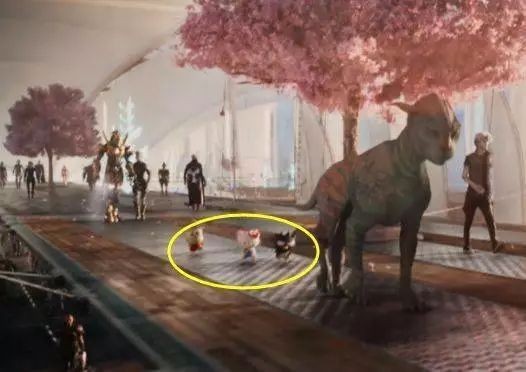 171.第一轮赛车的场景中除了恐龙,还有一段赛道设置成唐人街的样子,让人不禁联想到《夺宝奇兵2》里的开场场景。