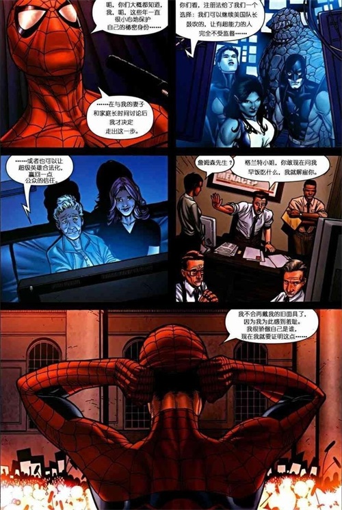 在漫威神作《内战》(2006)中,蜘蛛侠曾在钢铁侠的怂恿下,暴露了真实身份。