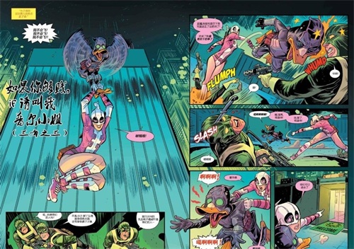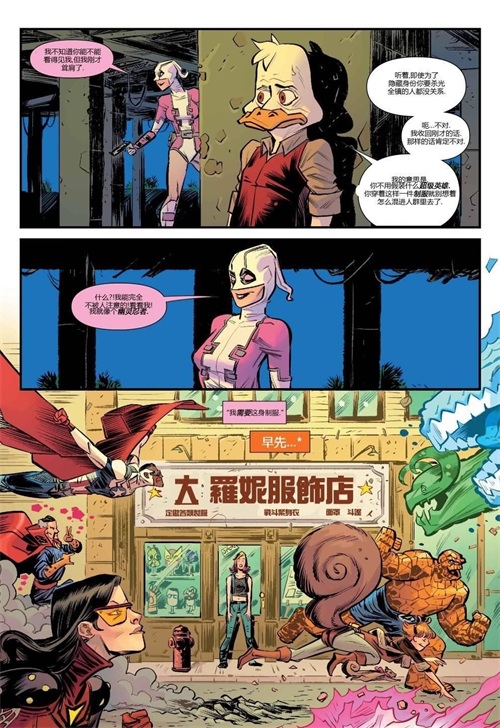 漫画中,不难看出女裁缝的客户非常多,最有趣的还是漫画中霍华德怪鸭的暗影战衣,对比这件衣服的细节,是不觉得非常眼熟?