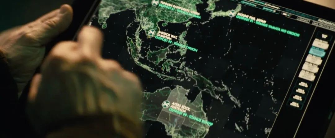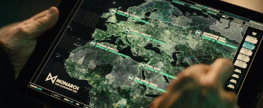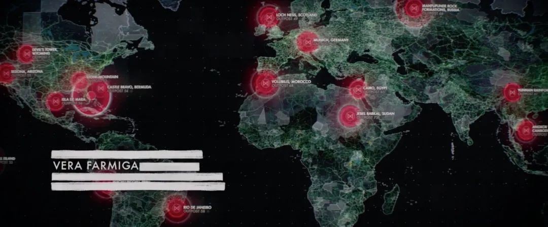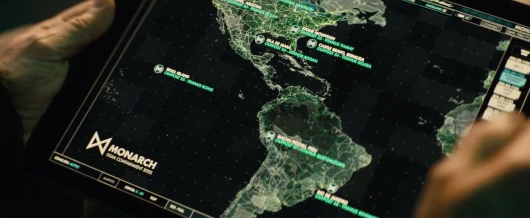 图中一共出现了15个前哨站,但帝王组织的基地远远不止这15个,《哥斯拉2:怪兽之王》正片中有更详细的标注: