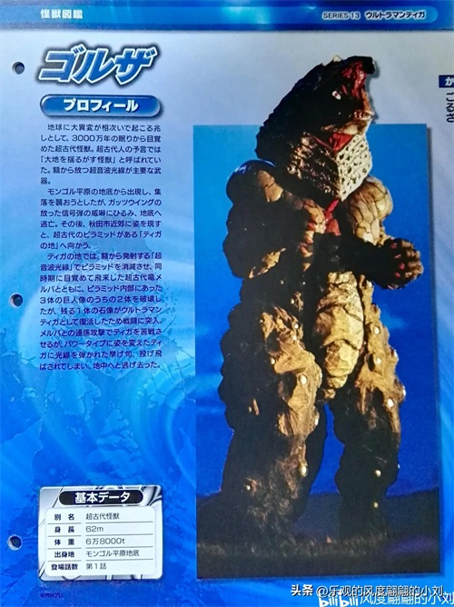 和哥尔赞同样是3千万年前的怪兽,在哥尔赞出现后,从伊斯坦岛地底苏醒。被幽怜称为「使天空崩裂的怪兽」。为了破坏东北地方的迪迦金字塔内的3尊巨人石像而把日本作为攻击目标。