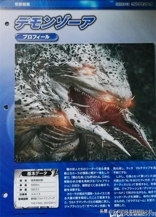 拥有“黑暗的支配者”之称,在南太平洋新西兰浮上的超古代遗迹——露露耶中复苏的邪神,实力最强的超古代怪兽。是幽怜所说的“巨大的黑暗”,也是三千万年前超古代文明灭亡的元凶。三千万年前与守护人类的光之巨人对立。因地球的超古代植物·齐杰拉觉醒,其花粉让全世界陷入迷乱,光之巨人不再被需要,使得其乘虚而入,世界被黑暗所支配。