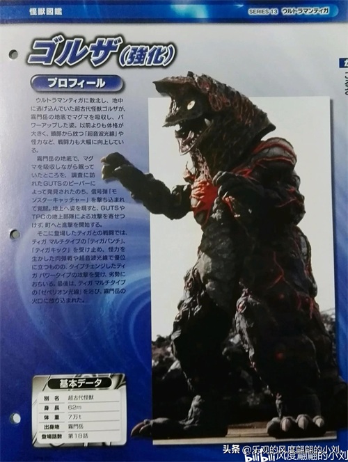 翼在训练中遭遇到的怪兽,外观酷似大型肉食恐龙,口中可以放出火焰。和翼一起被卷入时空裂缝而穿越到古代。被戴达拉操纵,袭击村子。和翼变身成的迪迦对决,因不太习惯战斗而转身回去了。于夜间发现了巨人金字塔,破坏了金字塔外壁,最后被迪迦的哉佩利敖光线打败。