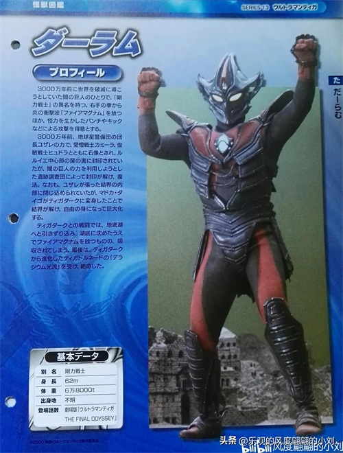3000万年前的超古代时期和黑暗迪迦、爱憎战士卡蜜拉、俊敏战士希特拉一起毁灭了超古代文明,打倒了许多超古代战士的暗之巨人。