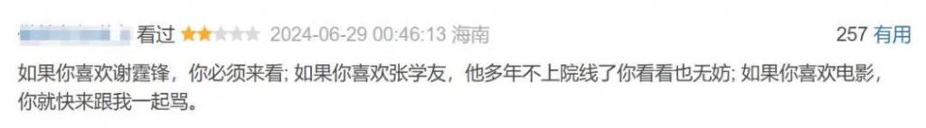「如果你喜欢谢霆锋,你必须来看。如果你喜欢张学友,他多年不上院线了你看看也无妨。如果你喜欢电影,你就快来跟我一起骂。」