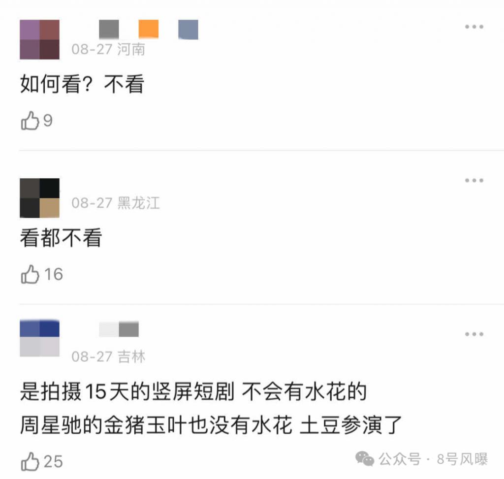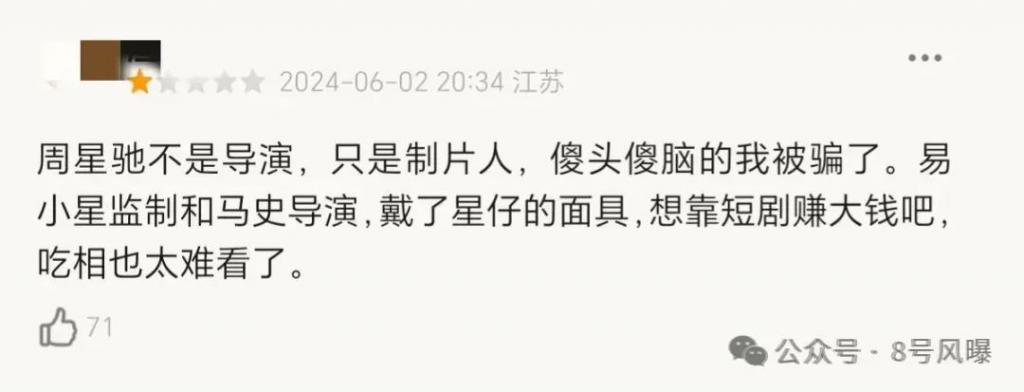 短剧中周星驰的喜剧痕迹被指存在感太弱,很难 get 到笑点,导致网友们纷纷声讨剧组的真实水平,并怀疑星爷只是挂个名,根本没参与制作。