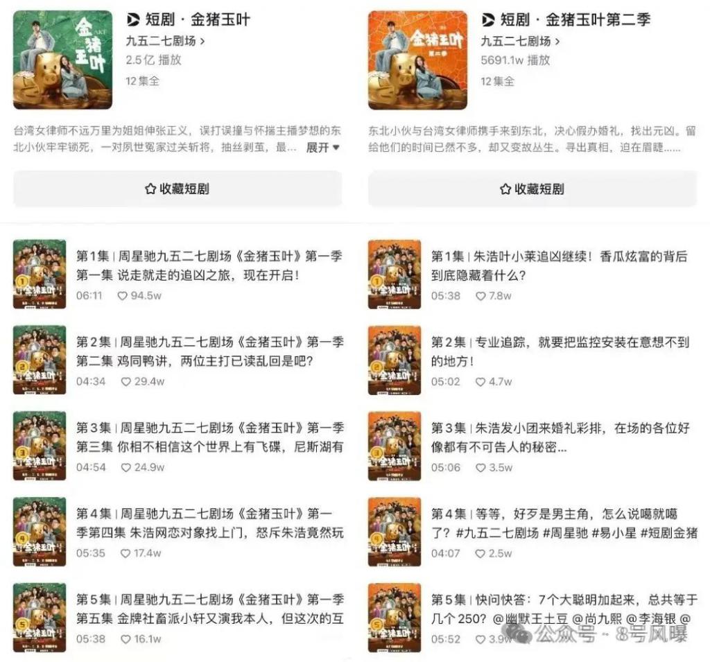 观众此番言论并非无中生有,不久前,周星驰出品的首部短剧《金猪玉叶》以及第二季都已播出完结。