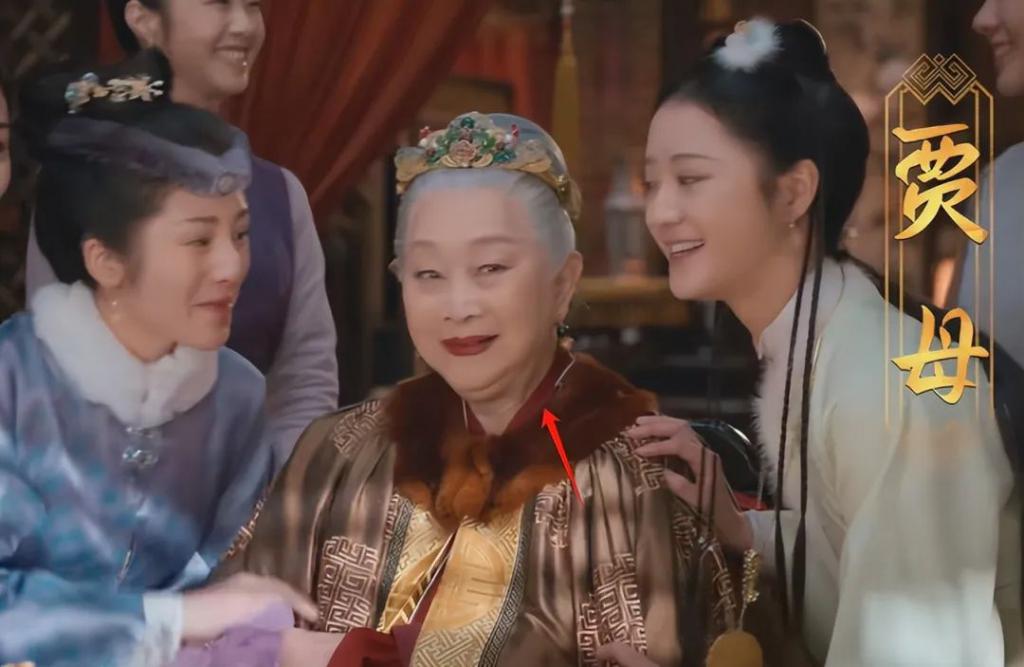 是贾府的史老太君贾母,让美国华裔演员涂个烈焰红唇戴上 " 王冠 " 样式的头饰出镜。
