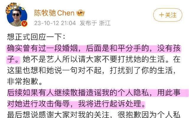 娱乐圈内外对于明星婚姻的看法不一,但对于陈牧驰而言,承认婚姻经历或许也是他勇于面对过去、坦然面对生活的表现。