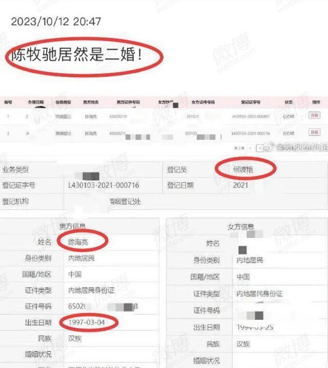 首先,陈牧驰二婚的消息传出,无疑让粉丝们大跌眼镜。