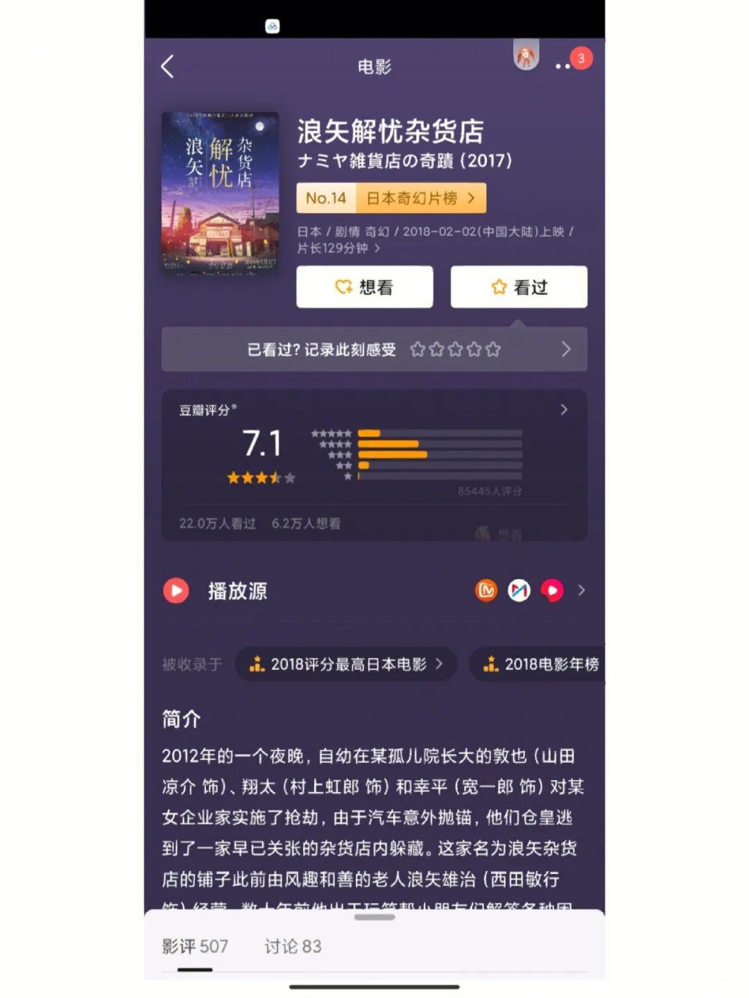 整个电影画面、细腻真挚的插曲、许多个串联在一起的小故事,让观众感动不已。一个有关于老人的一辈子、三个年轻人的自我救赎、看过原著再来看电影效果更佳,喜欢日系电影那种对于情感的细腻拿捏,没有过分地渲染就已经感动到不行。