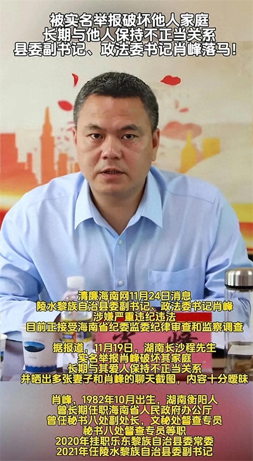 近日,一则关于海南陵水黎族自治县委副书记、书记肖峰涉嫌违法行为的消息引发了广泛关注。