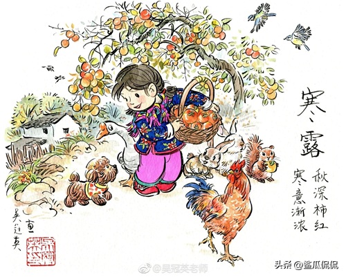 白露是秋天的第三个节气,通常出现在每年的 9 月 7 日至 9 日之间。白露时节,夜间气温下降,空气中的水汽凝结成露水。此时,北方地区的农作物开始成熟,农民们忙着收获庄稼,准备过冬。