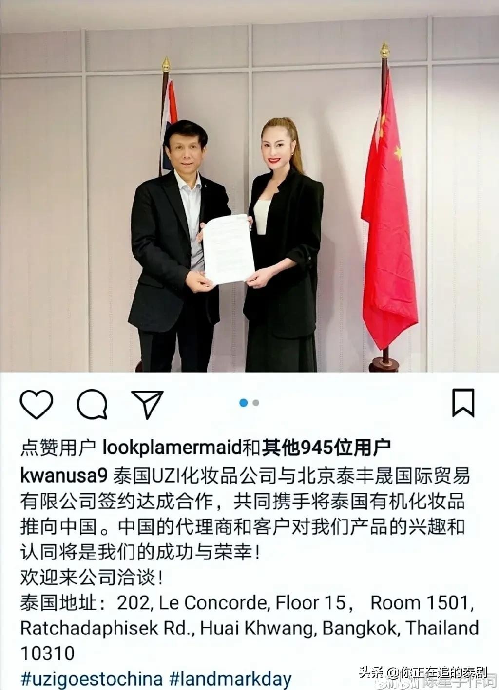 最近,作为泰国UZI化妆品公司的CEO,Kwan Usamanee与北京某国际贸易公司签约合作,计划将她旗下泰国有机化妆品推向中国市场。