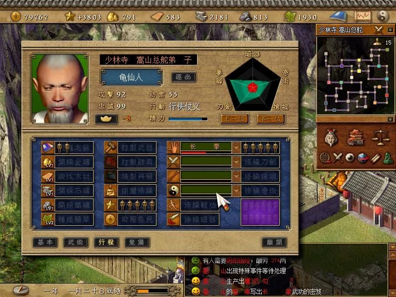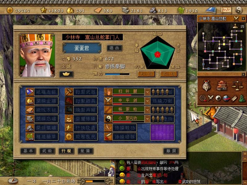 当时的很多武侠游戏,着重点都是在成为“大侠”本身的经历,以引出一段精彩故事为主,代入感非常强烈。但也有游戏另辟蹊径,选择从整体讲述着一个门派的历史发展轨迹。这款游戏,就是光谱资讯于2001年推出的武侠题材模拟经营游戏《天下霸图》。
