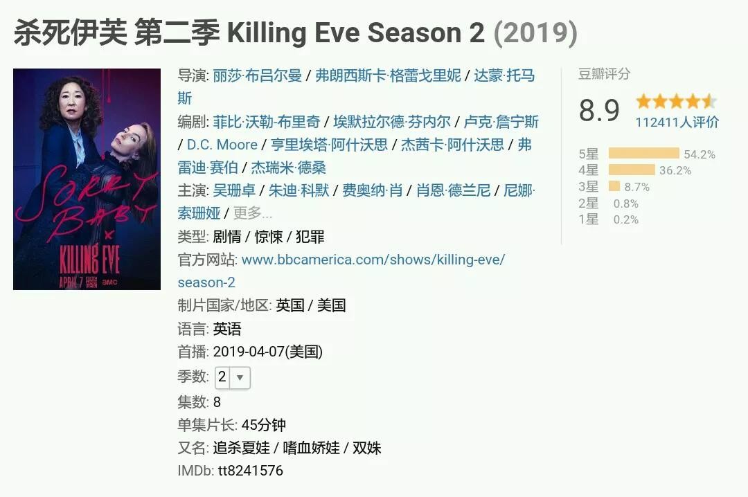 《杀死伊芙第二季》是由丽萨·布鲁尔曼和弗朗西斯卡·格蕾戈里妮执导,吴珊卓、朱迪·科默、费奥纳·肖、罗伊·贝克领衔主演的惊悚剧。